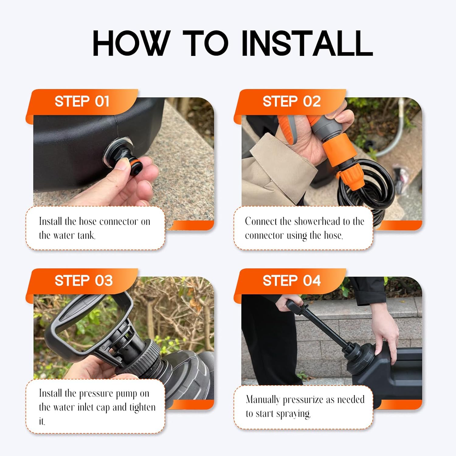 - 【Complete Kit with Spray Nozzle & Manual Pump】Includes an 8-mode high-pressure spray nozzle (mist. jet. shower. etc.). durable hose. and an efficient manual pressurization pump. delivering versatile cleaning power for everything from gentle rinsing to stubborn dirt removal